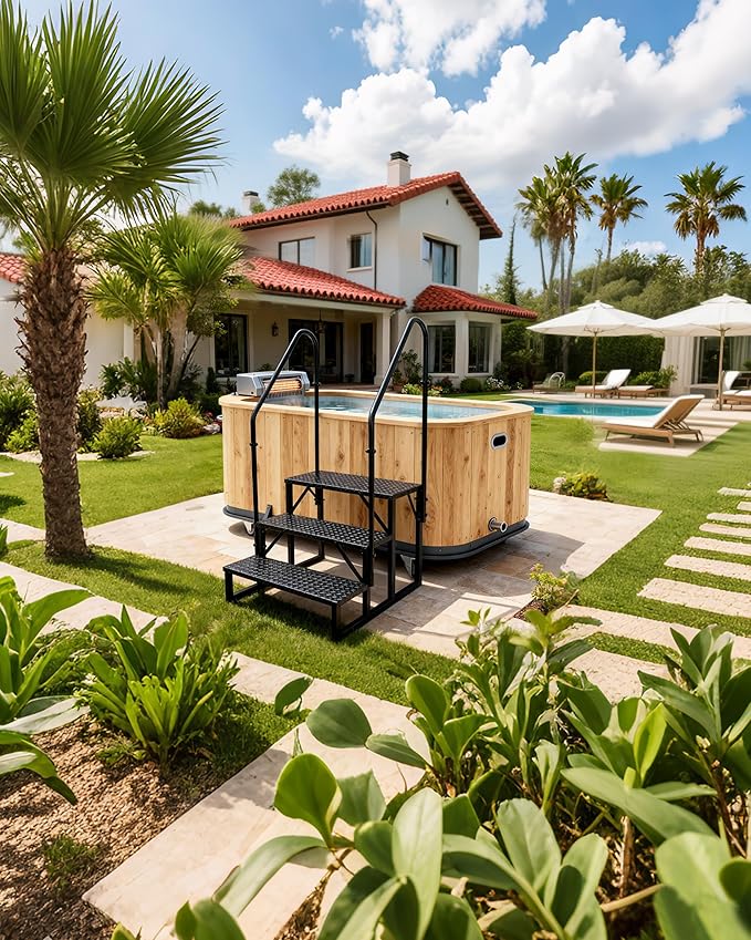 - 【Stable Triangle Structure】: Our hot tub steps with handrail are made of high-grade steel frame structure, which has higher strength and reliability. The triangular structure between the two steps of our RV Ladders strengthens the basic support, which will make the outside step stronger and more stable