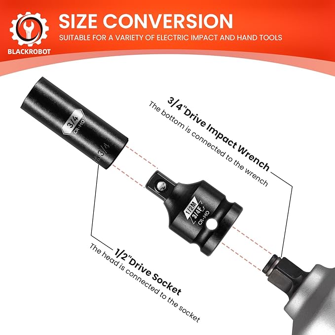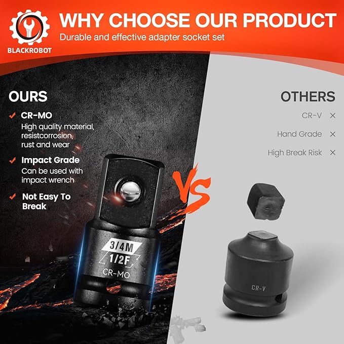 - PREMIUM CR-MO MATERIAL: The socket adapter is made of heat-treated forged Chrome Molybdenum Steel, it's corrosion-resistant and has ultra-high hardness. The thicker wall design can handle higher torque and prevent breakage