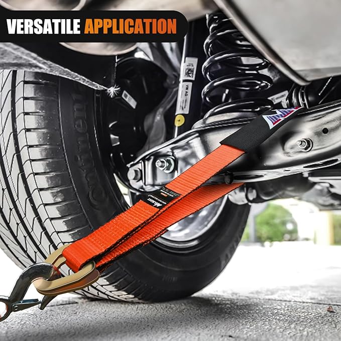 - 【Strong Load-bearing Capacity】- After testing, the breaking strength of our axle tie down straps is 11,127LBS, and the normal working load capacity is 3,709 LBS, which meets your daily,This Axle Tie Down Straps use will work well with any Car Engine Hoist, Truck, Trailer, UTV.