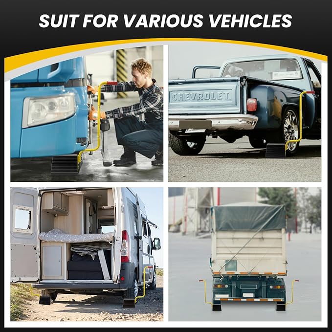 ROBLOCK 2 Pack Heavy Duty Rubber Wheel Chocks with Handle for Trucks, Sturdy Solid Anti Slip Wheel Stopper for All Weather Use -Trucks, RV, Travel Trailer, Pop Up Camper Accessory(2 Pcs)