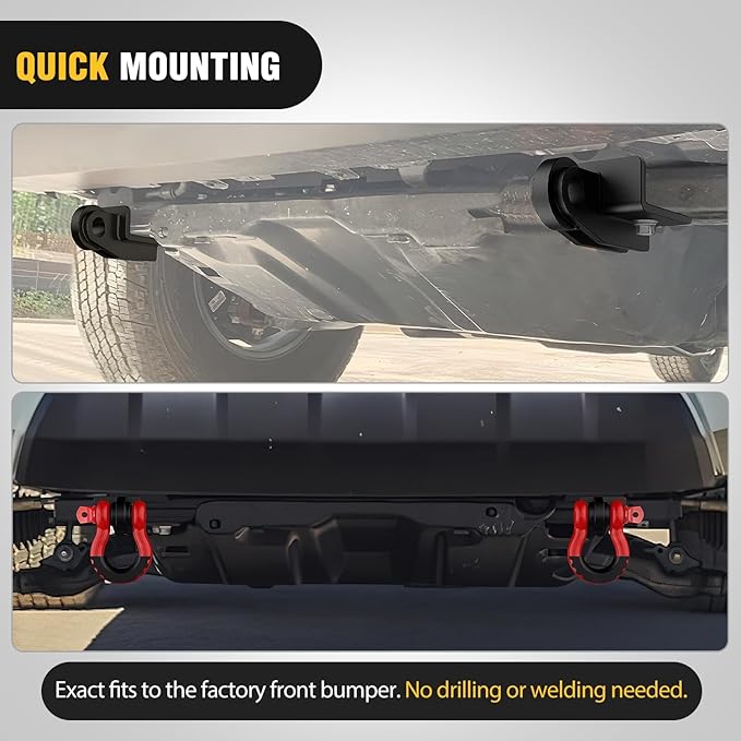 - 【Easy Installation】You just need remove the bolts and the tow hook, slip the demon bracket over the cross-member, tighten the factory bolts and then install the D rings by the screw pin attached.