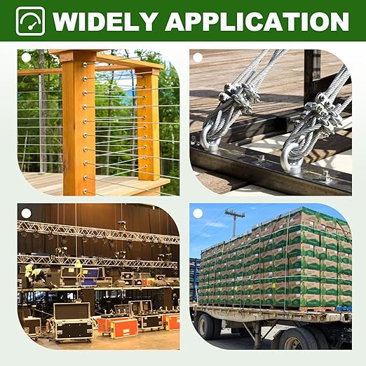 - Easy Installation: Our stainless steel wire rope is designed with convenience in mind. The 50FT length provides ample flexibility for different installation requirements. Additionally, it comes with 4 wire rope thimbles and wire rope clamps, making the installation process hassle-free. You can quickly and securely attach the wire rope to your desired anchor points.