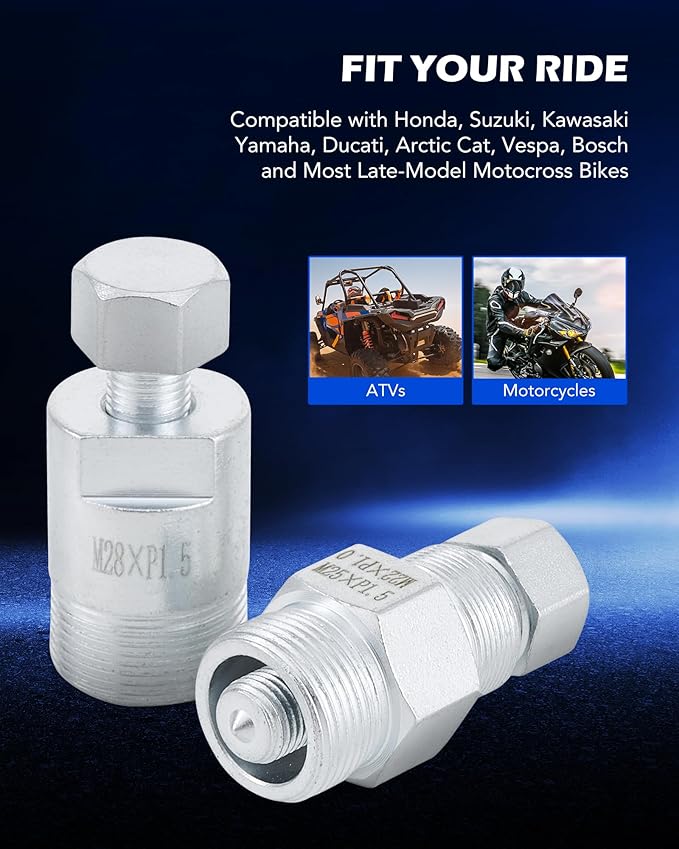 - WIDE COMPATIBILITY: These versatile engine flywheel tools are for street, performance, and off-road small engines on scooters, motorcycles, ATVs, and dirt bikes, compatible with Honda, Suzuki, Kawasaki, Yamaha, Ducati, Arctic Cat, Vespa, Bosch, and most late-model MX bikes
