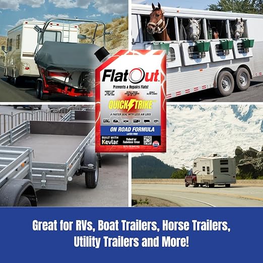- INTENDED FOR: FlatOut QuickStrike On Road Formula is perfect for RVs, Boat Trailers, Horse Trailers, Utility Trailers and More. (Not recommended for passenger vehicles)