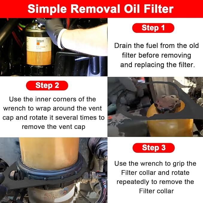 - Features: Specifically designed to assist in the removal and replacement of fuel filter collar and vent cap.The oil filter wrench teeth grab the fuel filter collar securely to help you remove and replace the fuel filter bowl faster and easier.save your money and time.