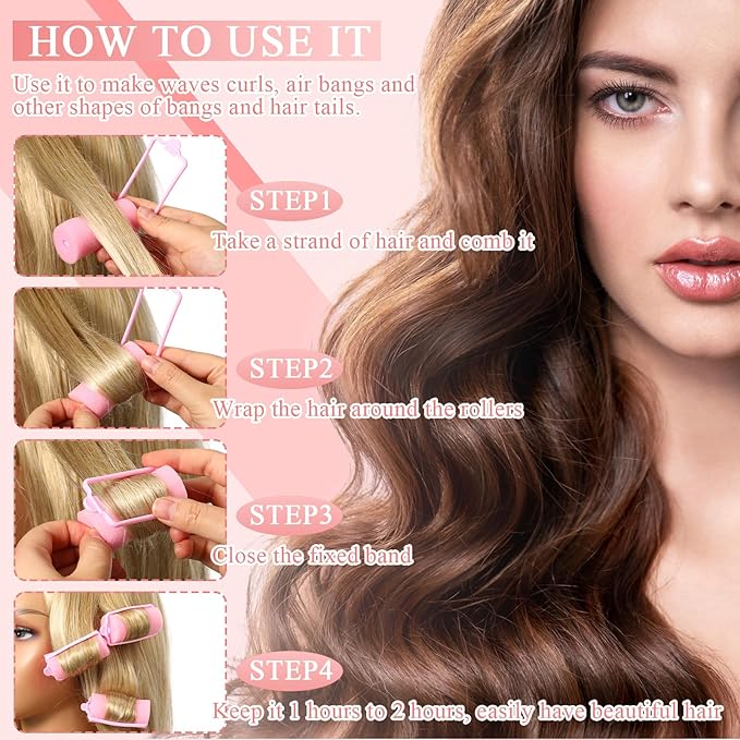 - Easy to Use: rollers grip the hair without the need for pins and clips; Just open the plastic fixed band wrap your hair on the roller, close the fixed band, go to sleep; Wake up you can get a beautiful curls