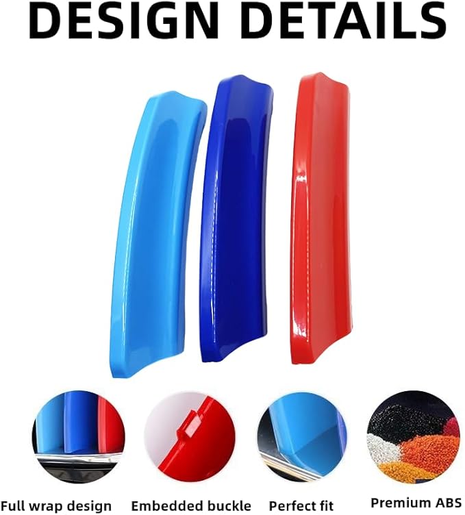 - 【Decoration effect】 It goes well with the front grid and has a wide variety of colors to match any color exterior decoration. Three-color mixed color (red / blue / light blue), of course, as Bimmer fan, you definitely know the meaning of these three colors. It makes your car look sportier like a performance car.
