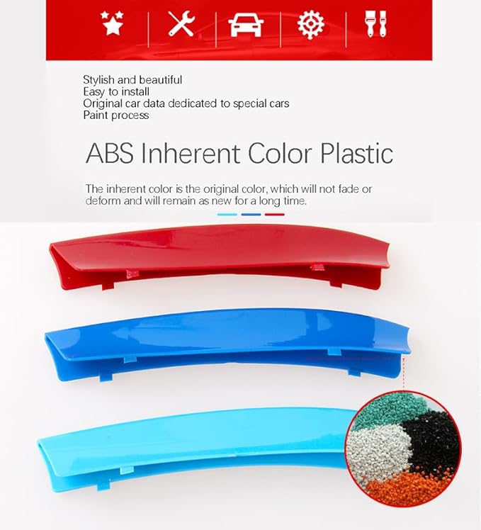 - 【Decoration effect】 It goes well with the front grid and has a wide variety of colors to match any color exterior decoration. Three-color mixed color (red / blue / light blue), of course, as Bimmer fan, you definitely know the meaning of these three colors. It makes your car look sportier like a performance car.