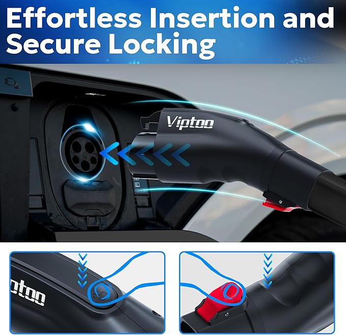- 【Exclusive Compatibility】The VIPTOO Adapter features a unique locking design that ensures a easy fit. Simply press to connect and remove—knowing your adapter stays securely in place while charging. Designed for J1772 inlet charging ports, this adapter offers a snug and reliable fit, compatible with a wide range of electric and hybrid vehicles, ensuring a worry-free charging experience wherever you go.