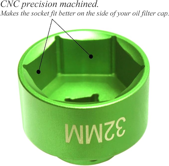 - 32mm socket Design – The 6-point hex features rounded corners to create a tighter fit while also preventing the filter socket from binding or rounding off the filter canister, oil filter socket will not yield under high torque applications