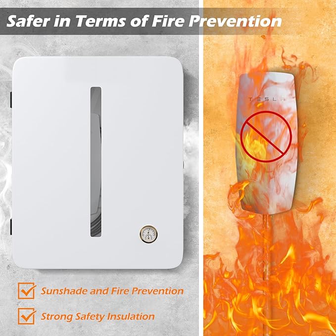 - Robust And Durable Mechanical Lock: We are well aware of the value of Tesla charging equipment, so we choose to use a mechanical lock. The mechanical lock is made of 304 stainless steel material to ensure that it will not rust in any environment, and the mechanical lock is more sturdy than ordinary combination locks. The design of the high-strength hinge cover ensures that the door is not easily damaged or cracked due to compression.