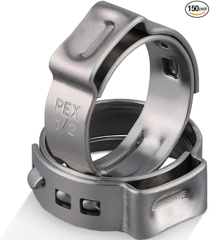150 Pack 1/2 Inch Pex Clamps,304 Stainless Steel Pex Cinch Clamps Stepless Pex Crimp Rings PEX fittings Pinch Clamps,Single Ear Hose Clamps for Pex Tubing Pipe