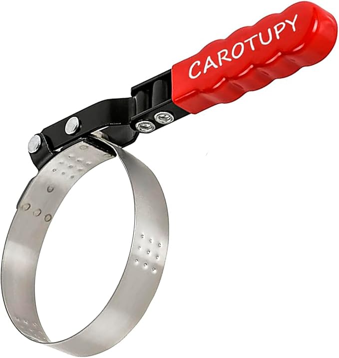- Unique Design:The oil filter wrench tool is designed with sturdy double layer riveted structure that can be adjust in two directions and swivel 180 degrees for easy use in narrow spaces. The protruding texture on the band provides a secure grip on the oil filter, preventing slippage during use.