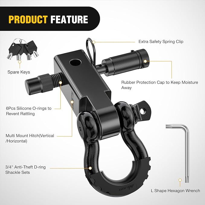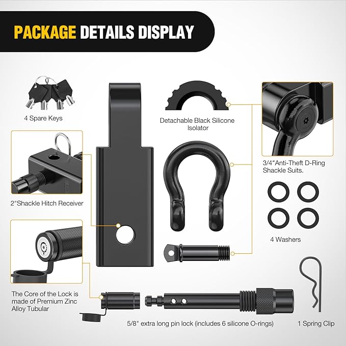- 【Package Includes】- 2" Shackle Hitch Receiver, Anti-Theft 5/8" Trailer Hitch Lock Pin, 3/4" Anti-Theft D-ring Shackle with Shackle Isolator & 2PCs Washers kits, protect the bumper from scratches and rattlin.2 Years Warranty Honored by Nilight