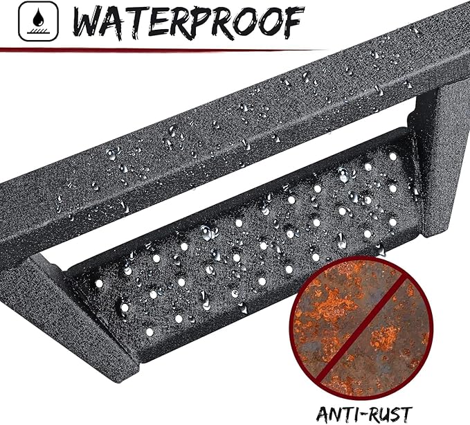 - 8 BRACKETS: Include two steps (one left and one right), mounting brackets, hardware, and instructions. Each side features 4 brackets for extra strength. No drilling or modification is required.