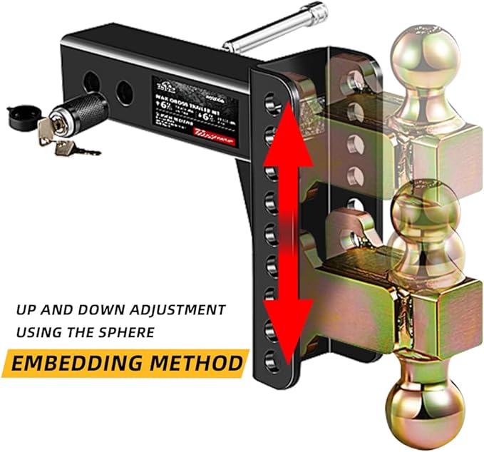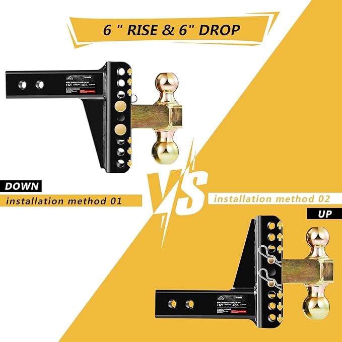 - 💯 6" Adjustable Ball Mount:Integrated hitch balls allow for supreme towing,while 6" drop/rise hitches offer flexible adjustment, adjusts in 1" increments so you get the perfect fit for any trailer height,With no need to change hitches for different vehicles.