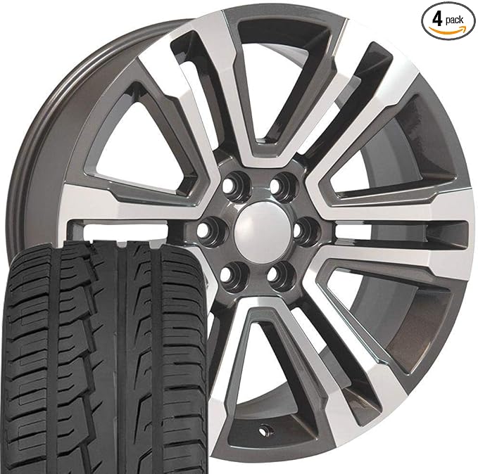 OE Wheels CV44 22 Inch Rims and Tires Fit Yukon Denali Style 6x139.7 22x9 Gloss Gunmetal Machined - Hollander 5822 - iMove Gen 2 SUV 285/45-22 (Set of 4)