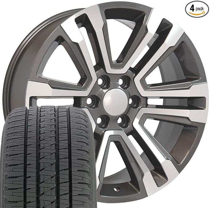 OE WHEELS CV44 22x9 Denali Style Wheels - Gloss Gunmetal 22 Inch Rims Set of 4, 6x139.7 Wheels - Optional TPMS & 285/45R22 Tires and Rims Packages - Fits GM Trucks & SUVs (Dueler Alenza H/L)
