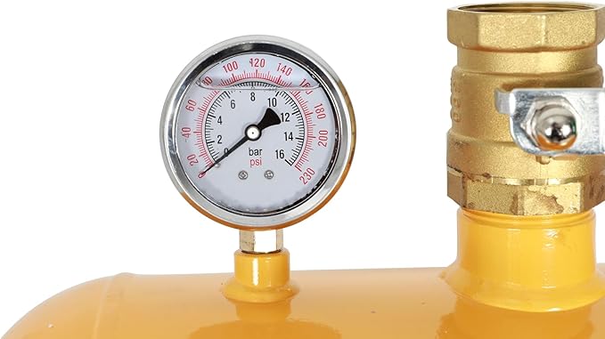 - Ⓞ Accurately fill the tank from standard shop compressor at recommended operating pressure of 87-116 PSI with the included easy-to-read gauge