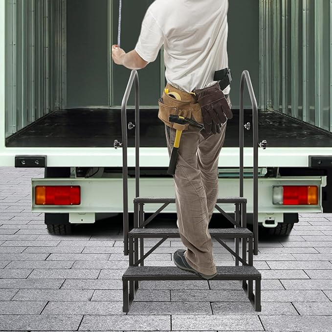 RV Steps with Handrail, 3-Step Stairs Steps, Upgrade RV Stair W/Non-Slip Mat, 450Lbs Mobile Home Stairs for RV, Travel Trailer, Camper Outdoor