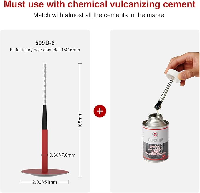 - 【One piece Technology】The Combination Repair Unit is designed with a premium vulcanizing rubber stem to fill hole in the tire, which can keep the wound from water and debris, so the steel belts will not easily get rust or delaminate.The round tire patch gum can adhere fully during repairs, which can restore the airtight liner to proper function and avoid flat tire.
