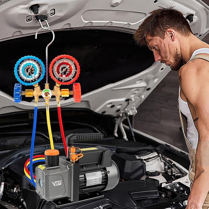 - Wide Compatibility: The provided hoses and manifold gauge are suitable for various refrigerants like R134a, R12, R22, and R502, and this AC vacuum pump versatile for Mini Split,HVAC and AUTO AC repair