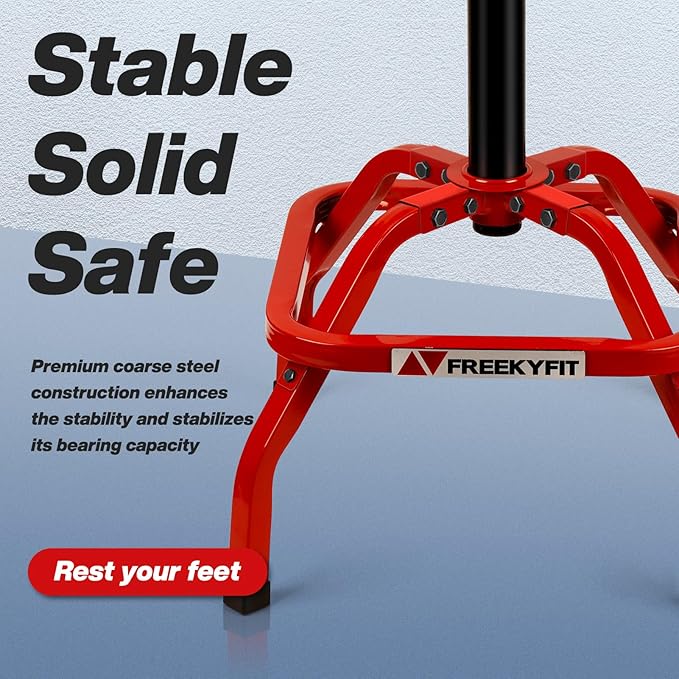 - 【Adjustable Stool】 24.49-30 inch adjustable height. This red shop stool is equipped with a pneumatic height adjustment mechanism, allowing easily adjust the height from 24.49 to 30 inch. Make it easy to be at a perfect level for whatever task you are doing