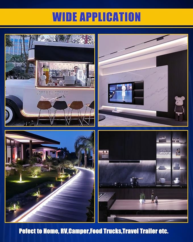 - 【Wide Application】IP68 Waterproof Technology , sutable for indoors and outdoors usage.perfect for Home,Restaurant,ceiling, RV, Camper, Motorhome, Travel Trailer, Concession Stands, and Food Truck etc.