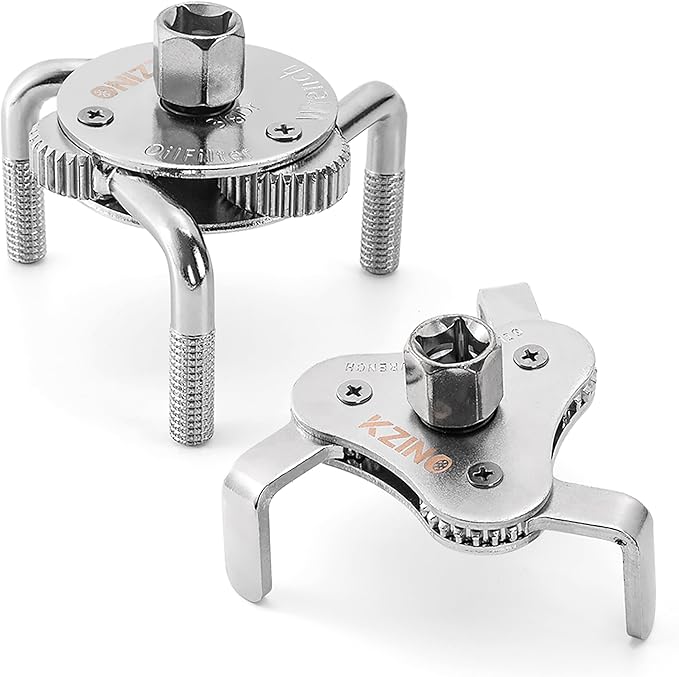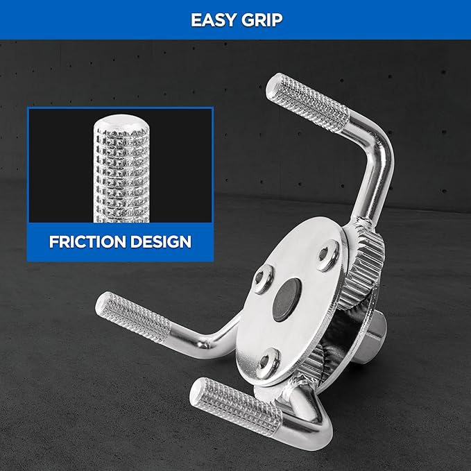 - 【Efficient Easy Use Design】This adjustable flat and round head design 3-jaw oil filter wrench meets your needs with 3 swivel legs that allow these oil change tools to fit perfectly and grip oil filters tightly. Friction design and forged steel increase torque and reliability. Easily remove the toughest filters on your vehicle, even in tight spaces.