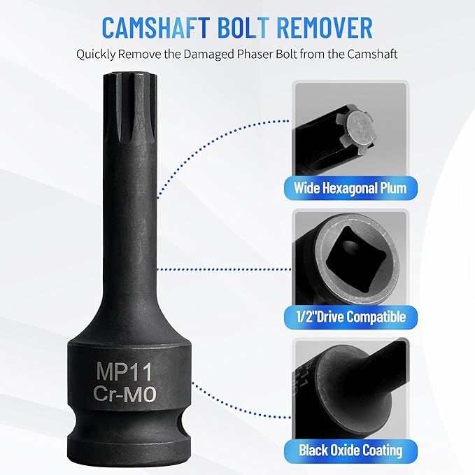 - Socket: This kit include RT11 cylinder head screw removal socket, the socket head is wide-sided hexagonal plum, with 1/2-Inch drive, use for remove cylinder head screw, this socket compatible with Ford 3.5L 3.7L engine.
