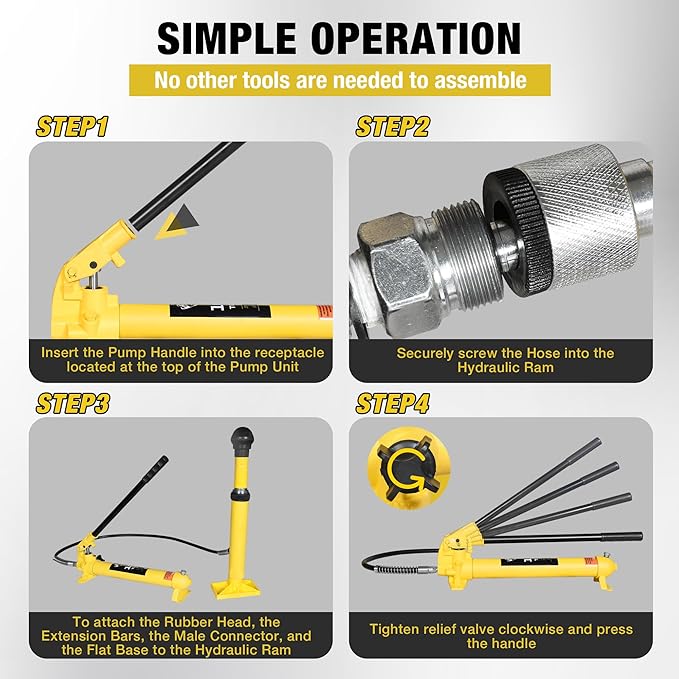 - Professional Design: Portable hydraulic ram kit includes everything you need to complete your repair work! Flex head features a permanently molded rubber pad, interlocked to prevent separation. The oil that anti freezing in winter and high temperature resistant in summer, is suitable for a wider range of regions