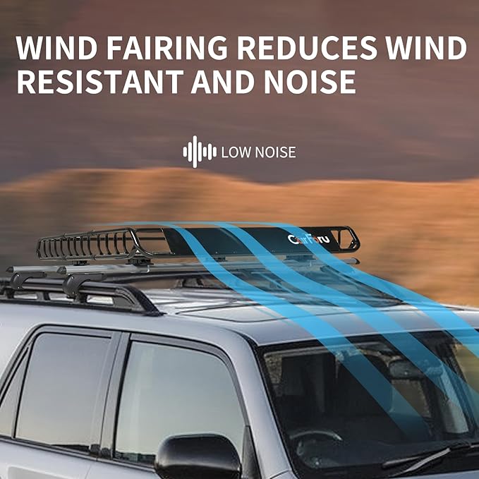 - [Heavy Duty & Extra Security] - Heavy-duty carbon steel construction with black powder coating resists weather elements and corrosion, offering several years of long-lasting use. Highest standard craftsmanship in the industry ensure its quality, each screw matches welding frame accurately. With its sleek and streamlined design, this roof rack basket not only adds a sporty look to your vehicle but also helps reduce wind resistance and noise.