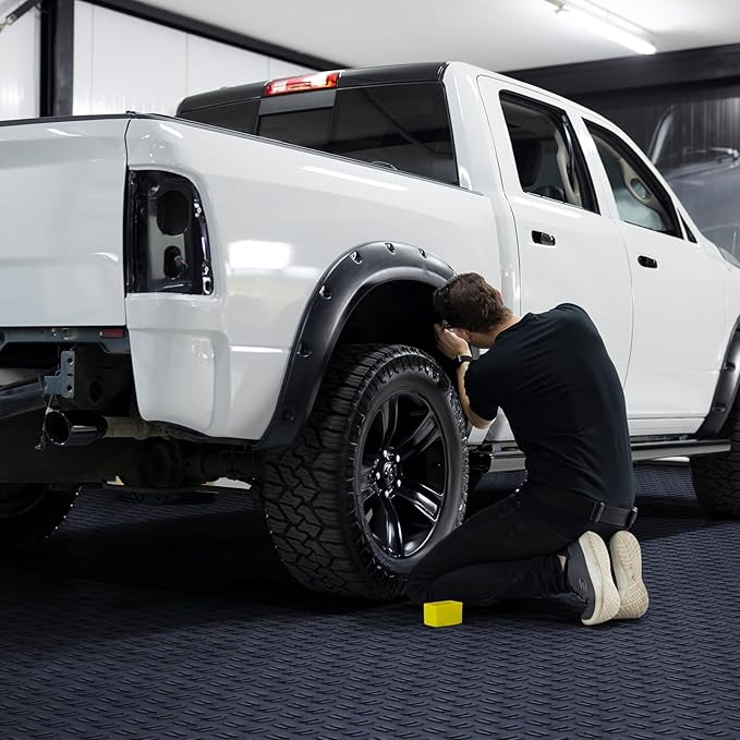 - 5500lbs Load Capacity: Our garage flooring interlocking tiles measure a thickness of 0.53inch / 13.4mm, ensuring outstanding wear resistance while providing robust load-bearing capability. It is capable of supporting up to 5500lbs without damage, even for large trucks.