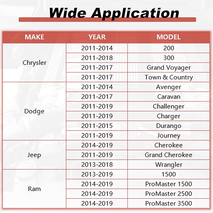 - Compatible with VW Chrysler Jeep Dodge Grand Cherokee Wrangler. Replace for 10369A, 10200A, 10200A-1, 10200A-2, 10200A-3, 10202A, 10200A1, 10200A2, 10200A3. And applicable for vehicles with the 3.6L engine.