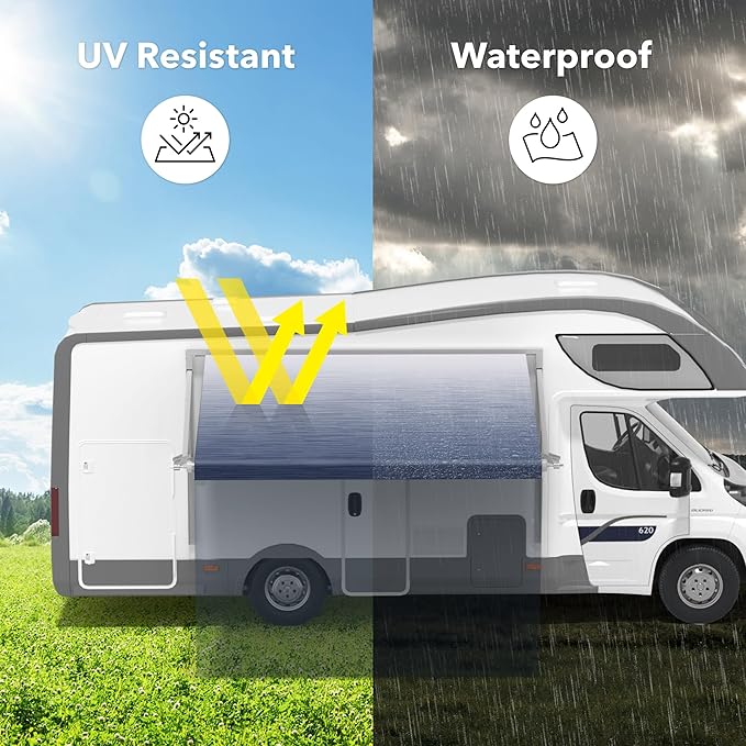 - WEATHER RESISTANT: Our water-resistant material effectively repels water, keeping your awning and the area beneath it dry during rainstorms and wet weather.