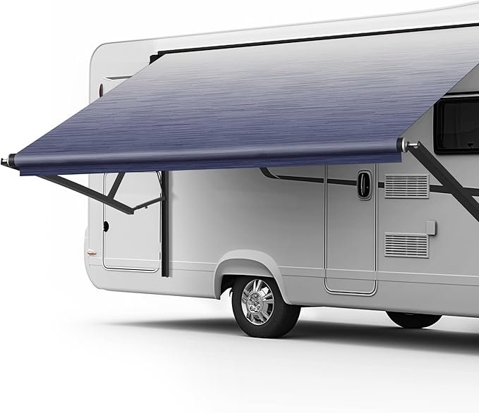 - STYLISH GRADUAL DESIGN: The blue gradient transitioning to white not only adds a fresh, vibrant look to your RV but also helps reflect heat and sunlight, keeping your shaded area cool and comfortable even on the hottest days.