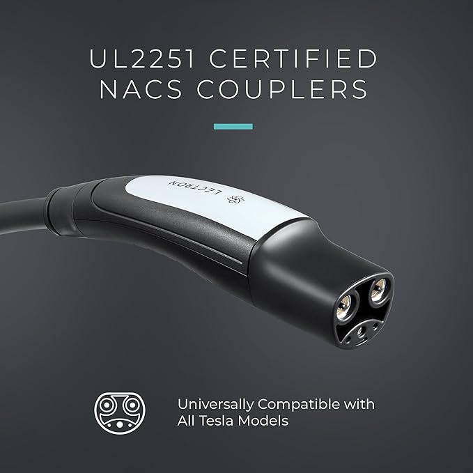 - COMPATIBILITY - This Tesla home charger is compatible with all Tesla models and North American Charging Standard (NACS). It plugs into a NEMA 14-50 outlet (40A max) or can be hardwired (48A max) and has a 16ft Tesla charging cable for convenient charging.