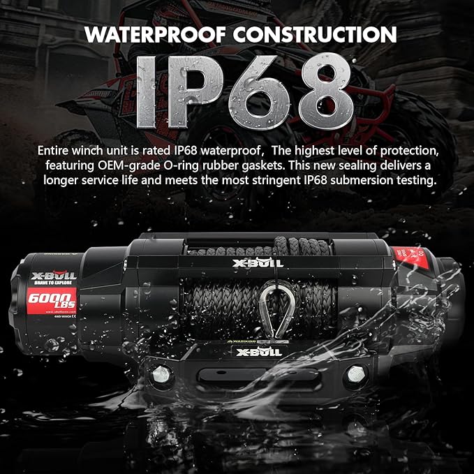 - Upgraded Waterproofing: Entire winch unit is rated IP68 waterproof, The highest level of protection,featuring OEM-grade O-ring rubber gaskets. This new sealing delivers a longer service life and meets the most stringent IP68 submersion testing. Make your winch easy for all types of environments