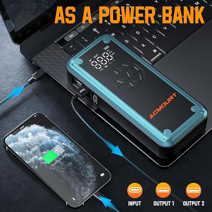 Jump Starter with Air Compressor, Acmount 5000A Car Battery Jump Starter with 150PSI Tire Inflator for Up to 9.0 Gas/8.0L Diesel, 12V Portable Jump Starter Box with LCD Display, Light (Blue)