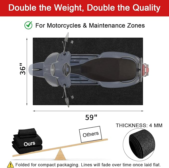 - ABSORBENT AND WATERPROOF PROTECTION: These garage floor mats absorb oil, brake fluid, and other automotive liquids, protecting your garage floor from stains and leaks. The slip-resistant, waterproof rubber backing keeps the pad rug in place, ideal for use under cars, motorcycle, and truck. Perfect for garage floor mats for under car, rubber floor mats, and driveway oil stain remover.