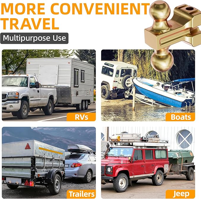 - VERSATILE USAGE: LOCAME adjustable trailer hitch can perfectly fit any standard 2'' receiver, rear bumper, agricultural machines and dual receiver extender with the same size. This trailer hitch has 2 different sizes of tow balls, allowing you to tow trailers with different coupler sizes