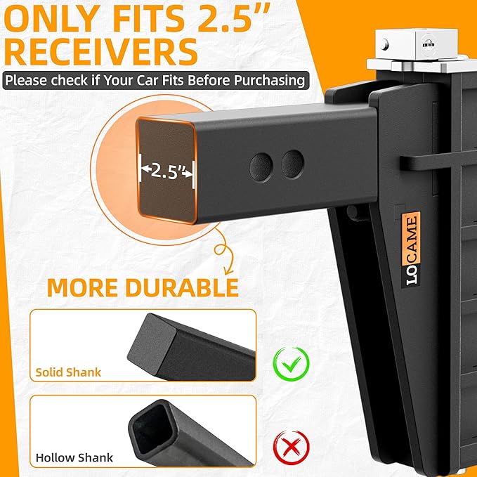 - SAFE & NOISELESS: LOCAME 2.5 inch adjustable hitch tri ball is equipped with a stainless steel lock, the anti-theft lock is more secure; equipped with silencer pads and built-in screws, the shock-absorbing design can reduce abnormal sound caused by shaking when the shank contacts the receiver