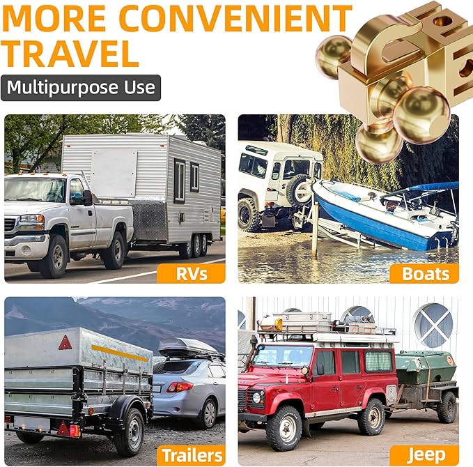 - NEW UPGRADE:This tri-ball with hook trailer hitch is newly upgraded with a new ball mount locking function to provide you with more comprehensive and reliable safety