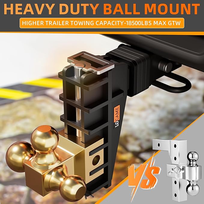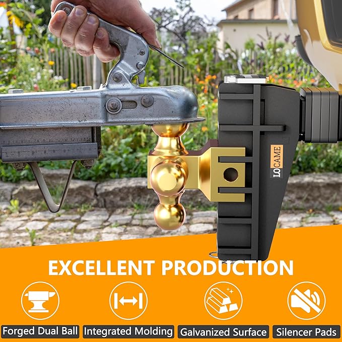 - SAFE & NOISELESS: LOCAME 2.5 inch adjustable hitch tri ball is equipped with a stainless steel lock, the anti-theft lock is more secure; equipped with silencer pads and built-in screws, the shock-absorbing design can reduce abnormal sound caused by shaking when the shank contacts the receiver