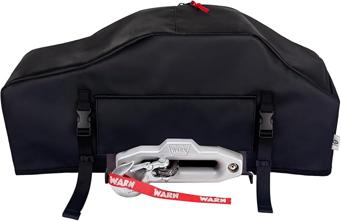 - Weather Resistant: Protects against rain, UV rays, and dust, keeping the winch safe from the elements. The zipper provides access to the clutch handle and remote socket, while the front flap opens for access to the winch drum.