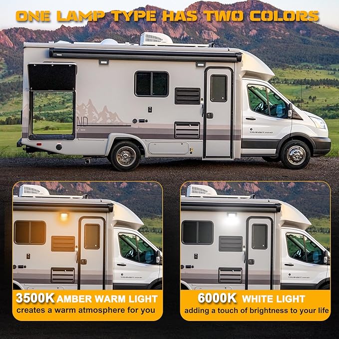 - Have Two Colors: Led RV Lights Exterior has two colors, white and amber. The white light effect illuminates your life, and the amber light effect adds a touch of warmth to your fun RV trip.
