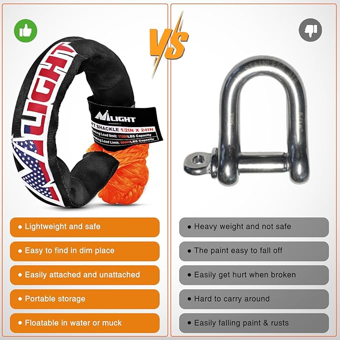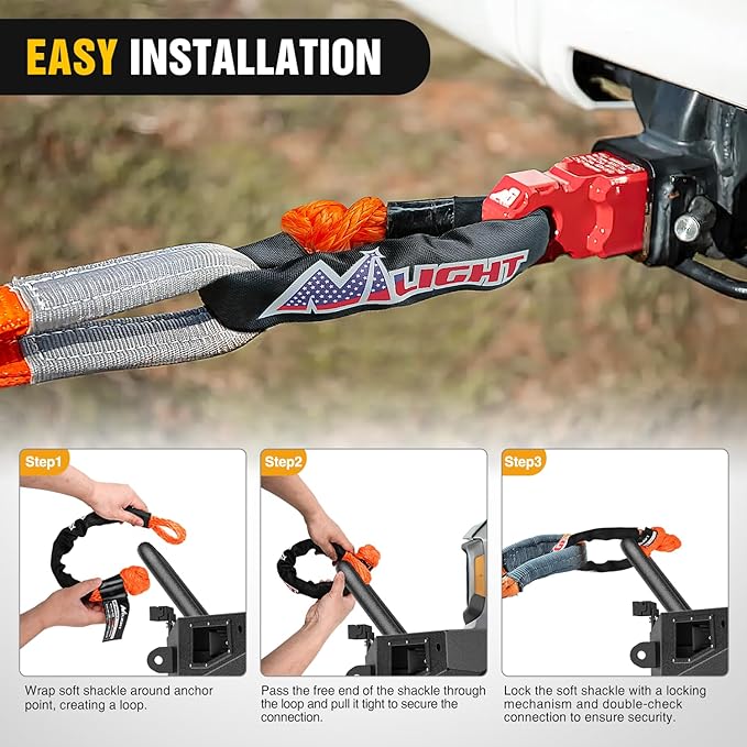 - 【Versatile Applications】- More affordable and much safer, rugged and top quality, appropriate for all vehicle types including full size pickup, off road, SUV, ATV, UTV truck boat car etc, use with hitch receiver, snatch block, winch, or tow straps.