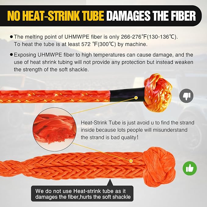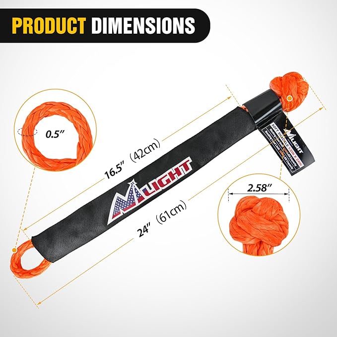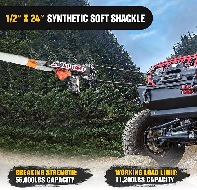 - 【Strong Load-bearing Capacity】- After testing, the breaking strength of our Synthetic Soft Shackle is 56,000LBS, and the normal working load capacity is 11,200LBS, of force and allow you to tow your vehicle out of any conditions safely and sound. Use these 4x4 recovery ropes at the lake, beach, in desert storms, and while you’re camping