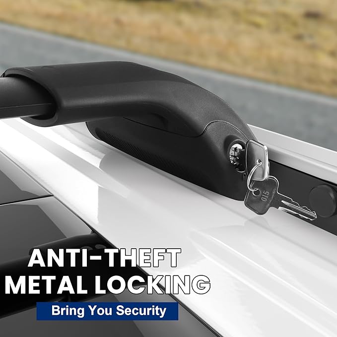 - 【Security and anti-thef】FLYCLE Roof Rack Crossbar is made of high-quality aluminum alloy, which is lightweight and durable. upgraded with metal anti-theft lock system, offer 100% anti-theft protection for your travel transportation.
