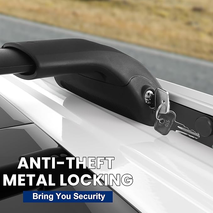 - 【Security and anti-thef】FLYCLE Roof Rack Crossbar is made of high-quality aluminum alloy, which is lightweight and durable. upgraded with metal anti-theft lock system, offer 100% anti-theft protection for your travel transportation.